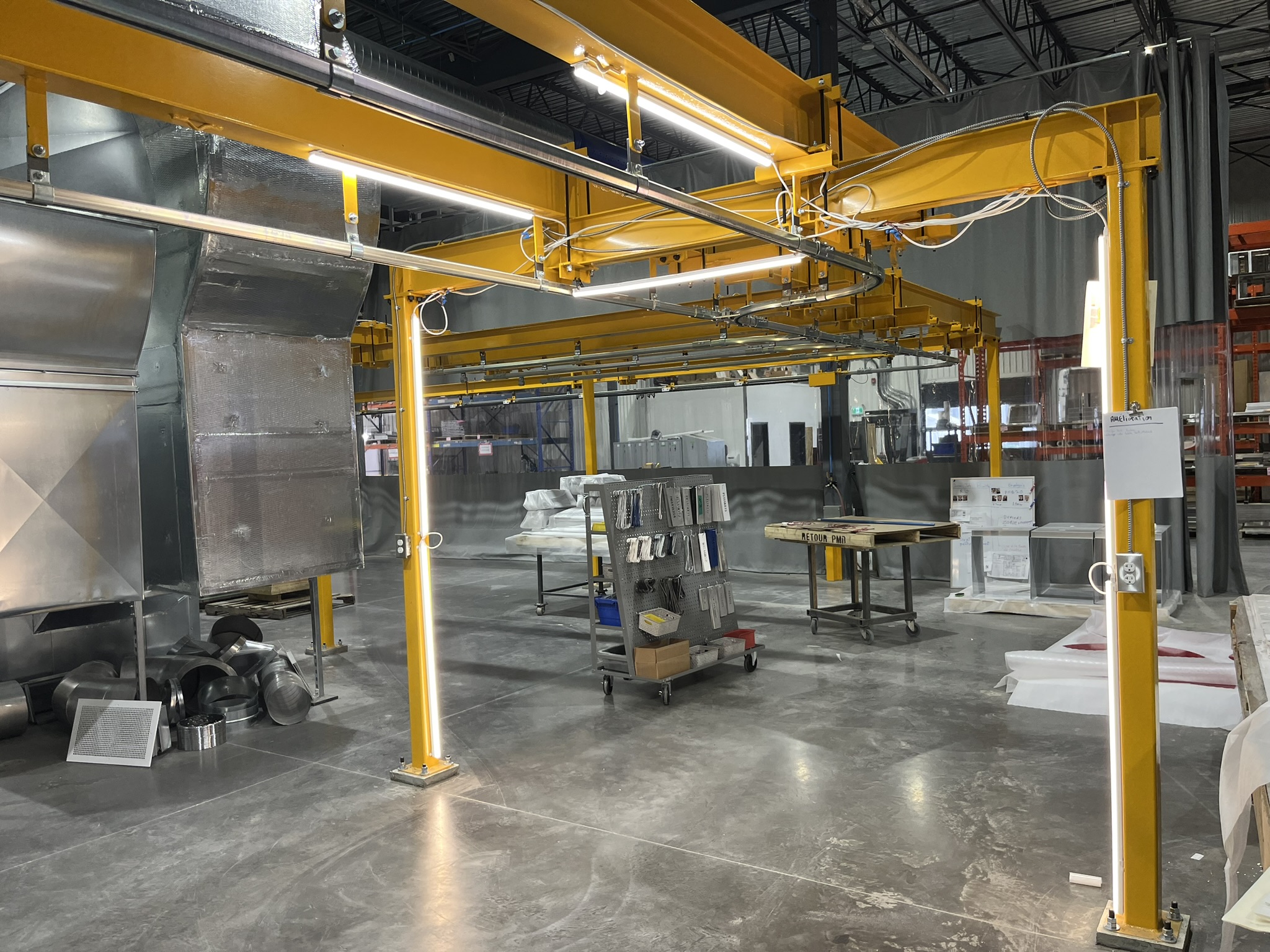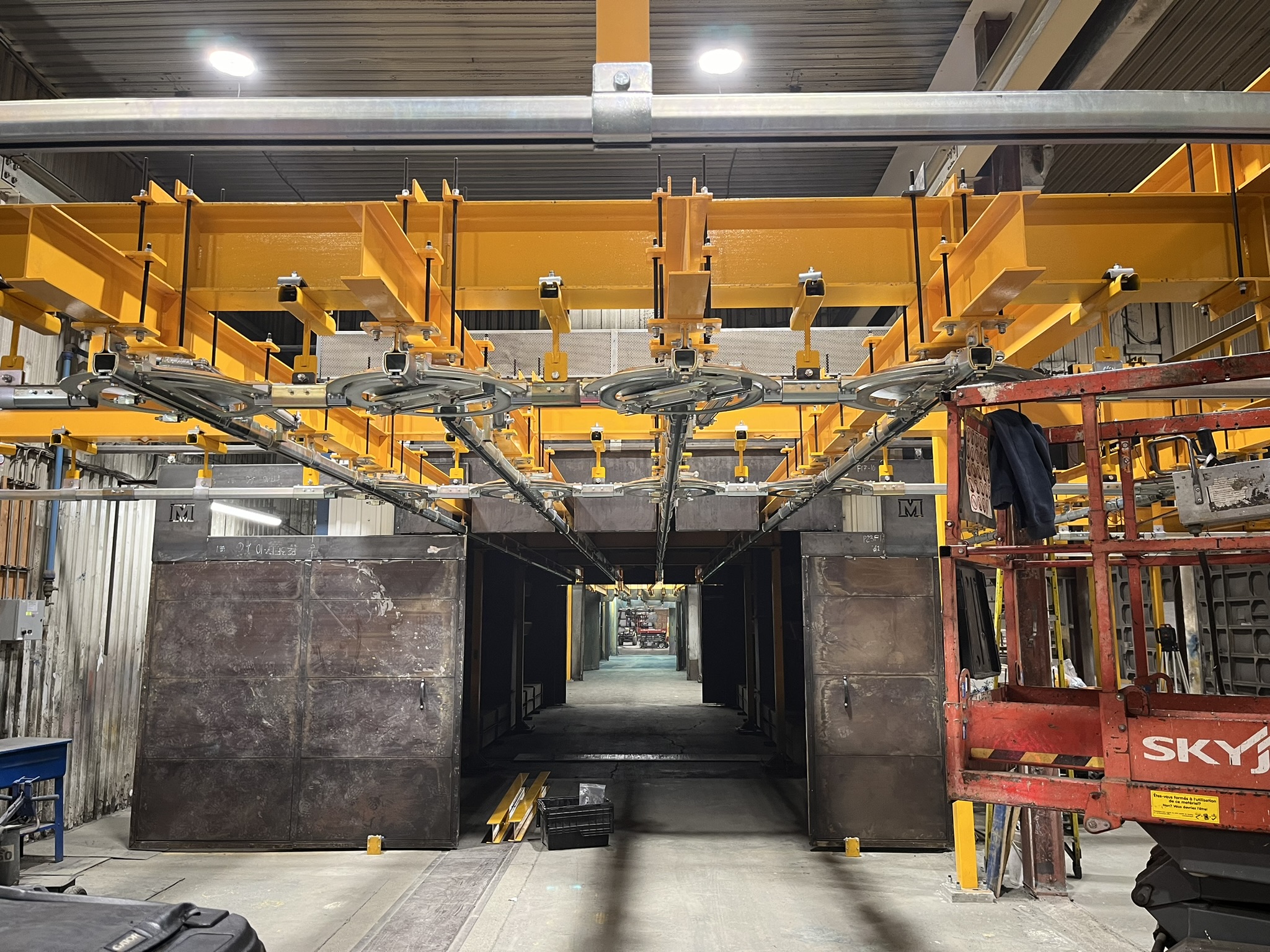 - Space-saving: Overhead installation with no floor obstruction, ideal for space-constrained facilities.