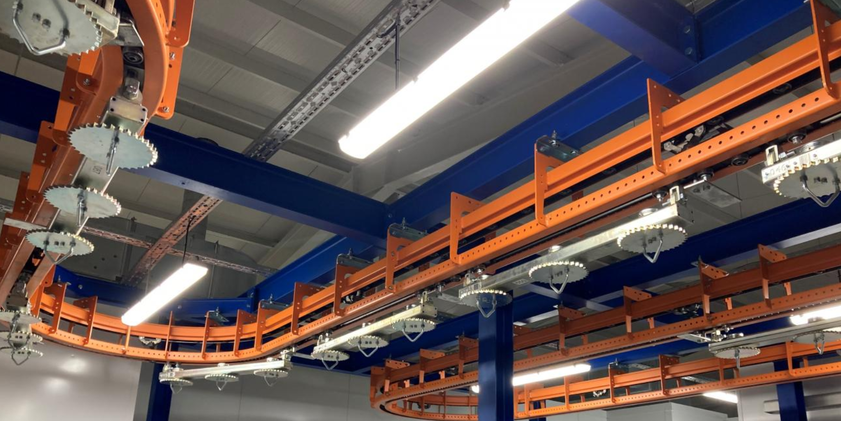 Convoyeur Power & Free – Rail aérien motorisé à double voie